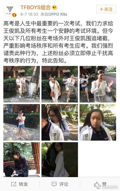 8. [+1179] Sasaengs are not fans. As fans of Karry, we suggest @TFBOYS组合 reports this to the police for them to handle this situation. These people who affect examination candidates should be severely punished! Wishing all examination candidates all the best for their papers.